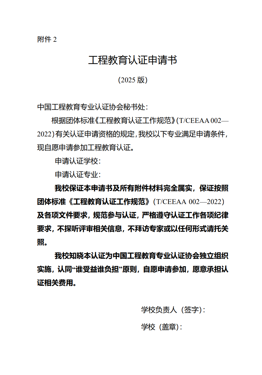 工程教育認(rèn)證申請(qǐng)書(shū)(2025版)